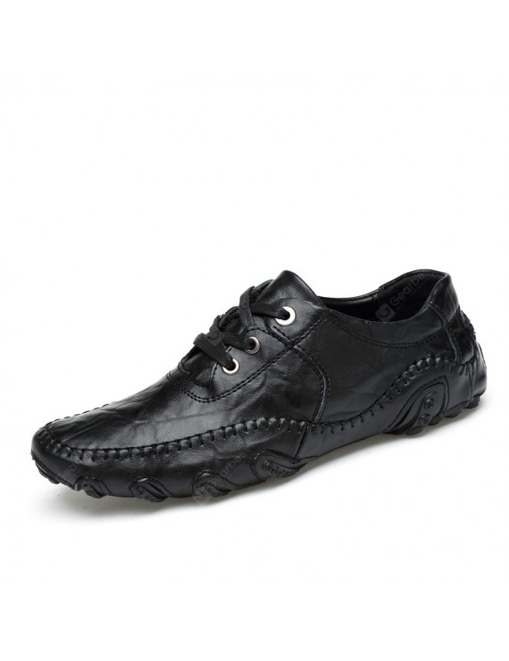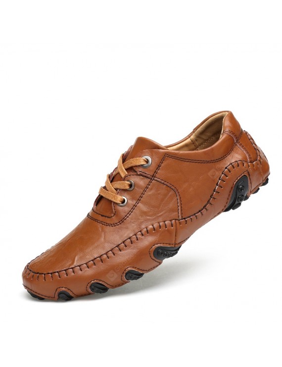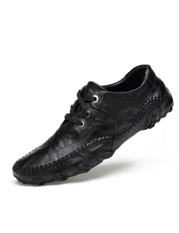 Casual Shoes - Men's Casual Breathable Leather Shoes Low-cut Fashion Driving Shoes