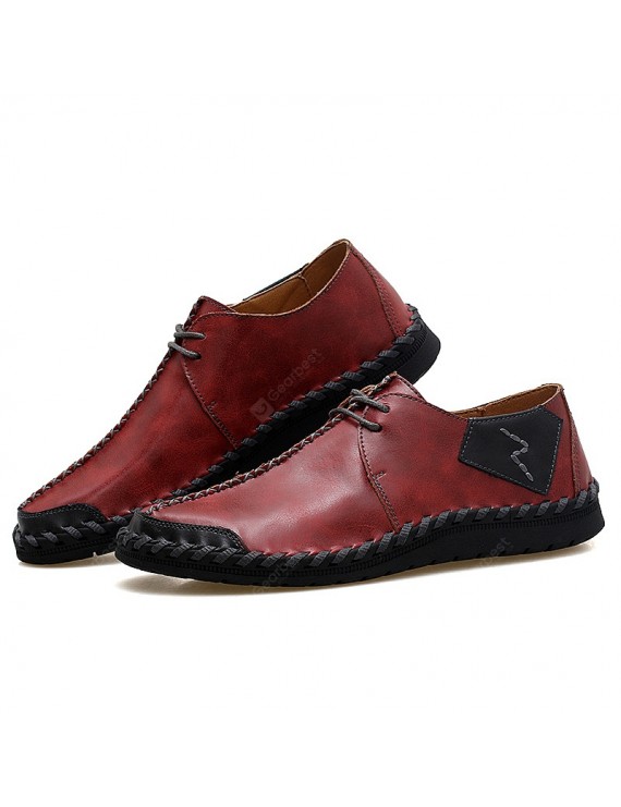 Men's Leather Breathable Lazy Casual Single Shoes Rubber Bag Skates - Red Brown 12139 42