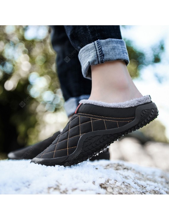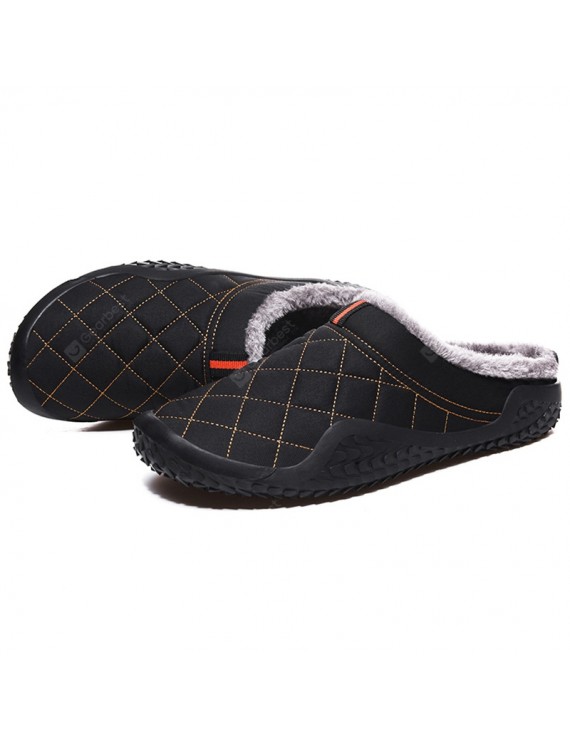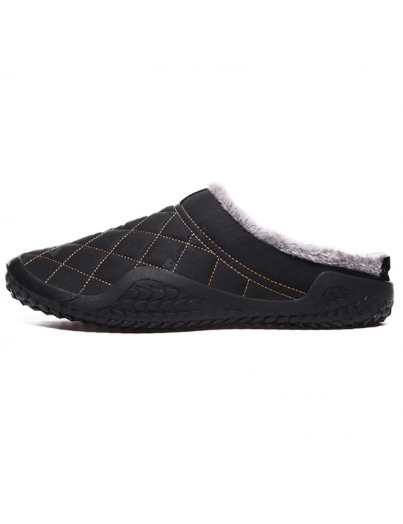 Men's Warm Waterproof Non-slip Slippers Casual Shoes Plaid- Black EU 40