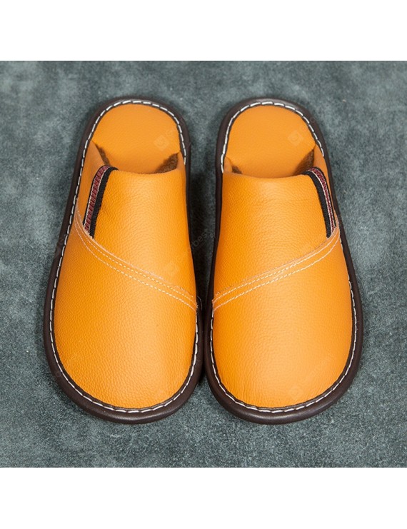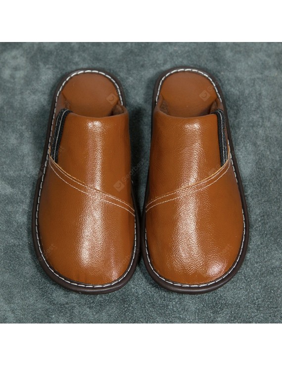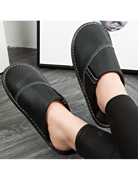 Winter Neutral Cowhide Leather Slippers For Men And Women Young Middle-aged Chinese-style Jacket Elderly Baotou Toe Slippers