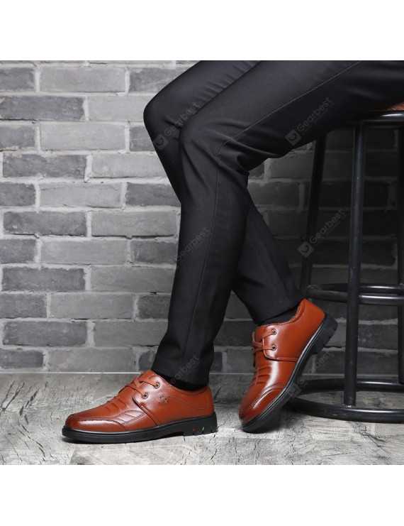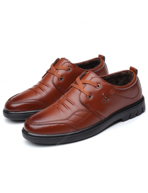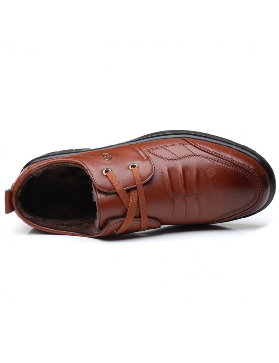 Dress Shoes - Autumn and Winter New Men's Leather Cotton Shoes Lace-up Cotton Footwear