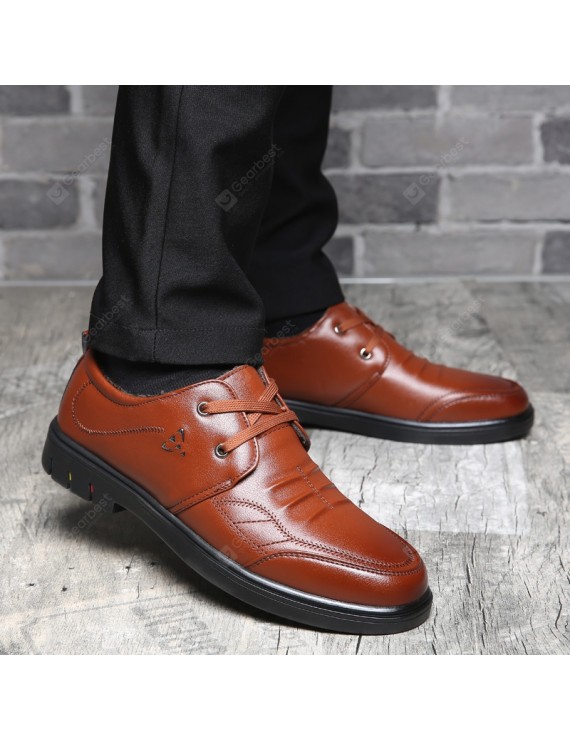 Autumn and Winter New Men's Leather Cotton Shoes Lace-up Cotton Footwear - Brown EU 39