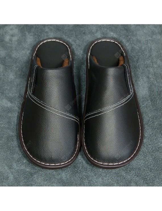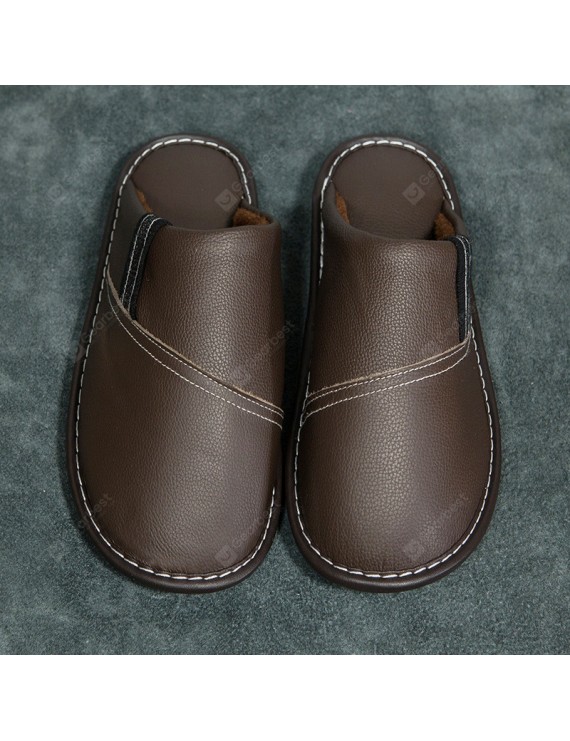 Winter Neutral Cowhide Leather Slippers For Men And Women Young Middle-aged Chinese-style Jacket Elderly Baotou Toe Slippers - Coffee Men's 29 (43/44)