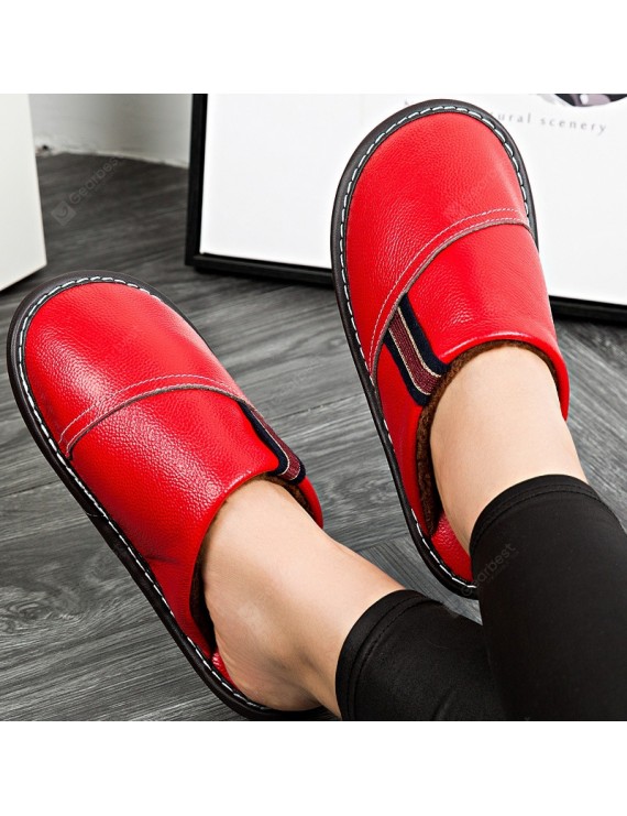 Winter Neutral Cowhide Leather Slippers For Men And Women Young Middle-aged Chinese-style Jacket Elderly Baotou Toe Slippers